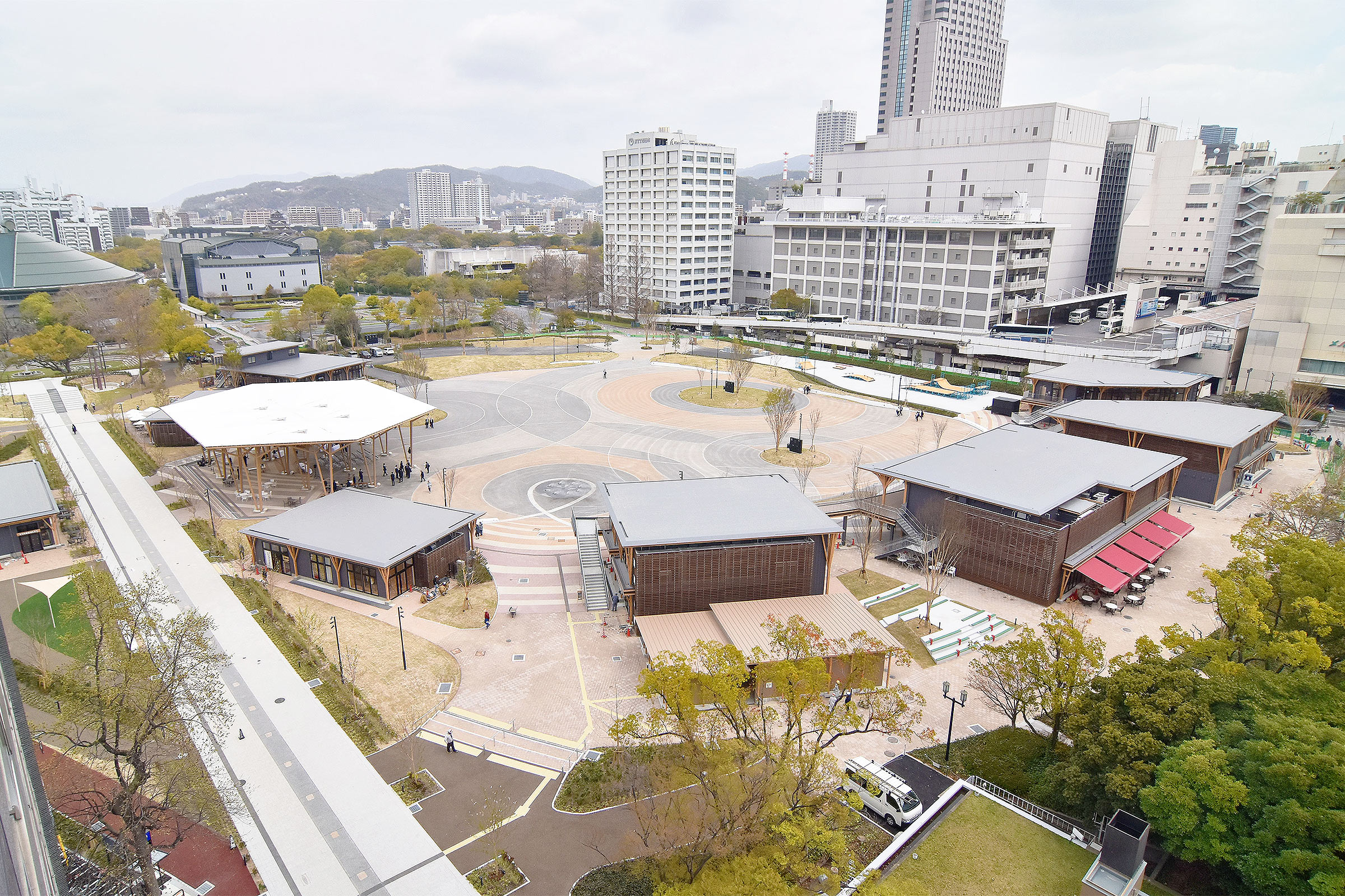 旧市民球場跡地に整備され、主にイベント会場として使われている公園。公民連携事業ならではの特徴が各所に見られます。ガイドツアーでは、デザインに着目しながら園内を散策し、その背景や設計上の工夫の数々、平和記念公園との関係性などを解説します。