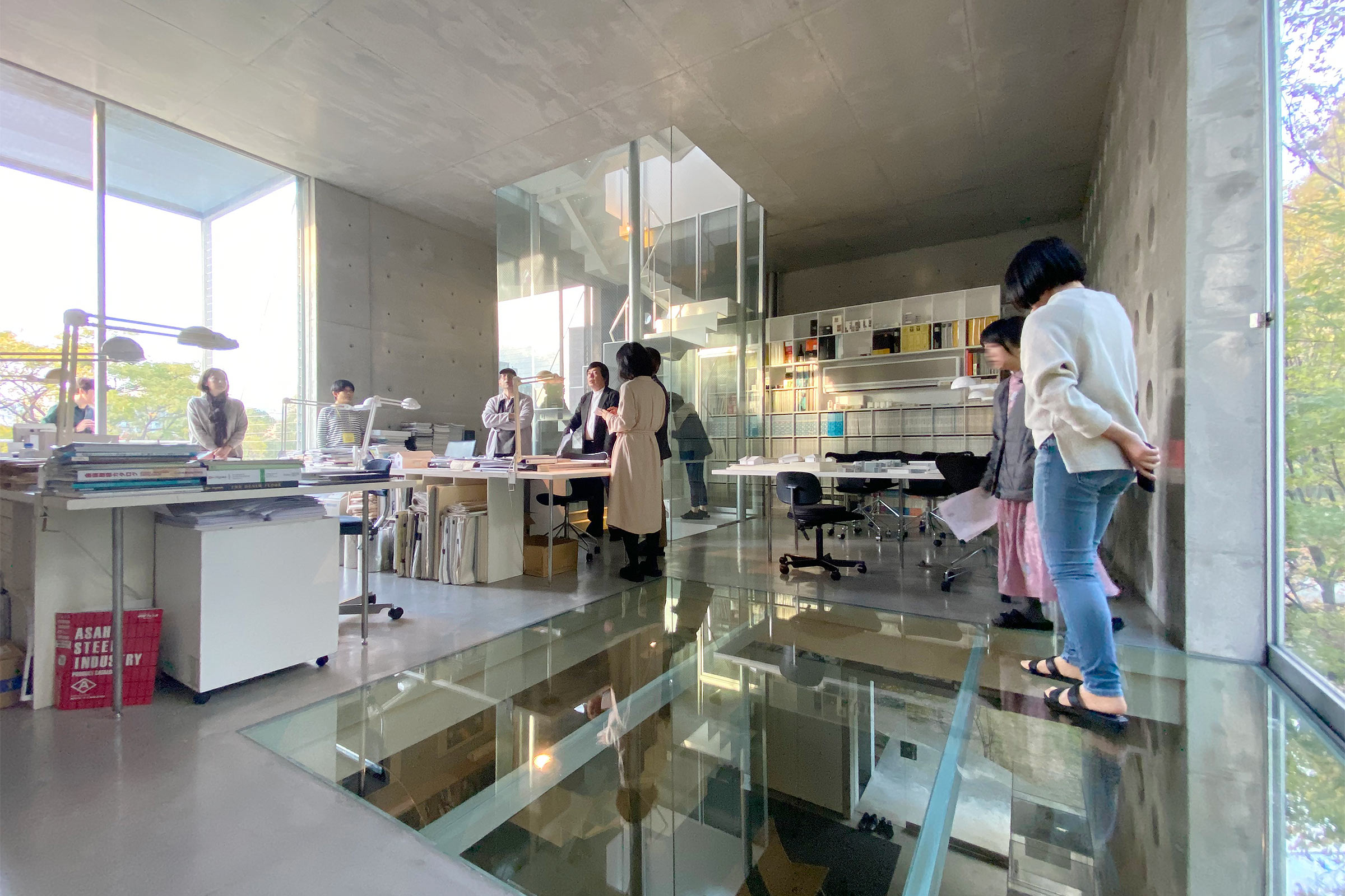 建築家村上徹氏のアトリエ。比治山の麓という立地を生かしつつ、コンクリート打ち放しで極力シンプルなかたちを用いた空間表現が追求されています。スタイリッシュなデザインの階段も見逃せません。ガイドツアーでは解説付きで建物内を見学します。