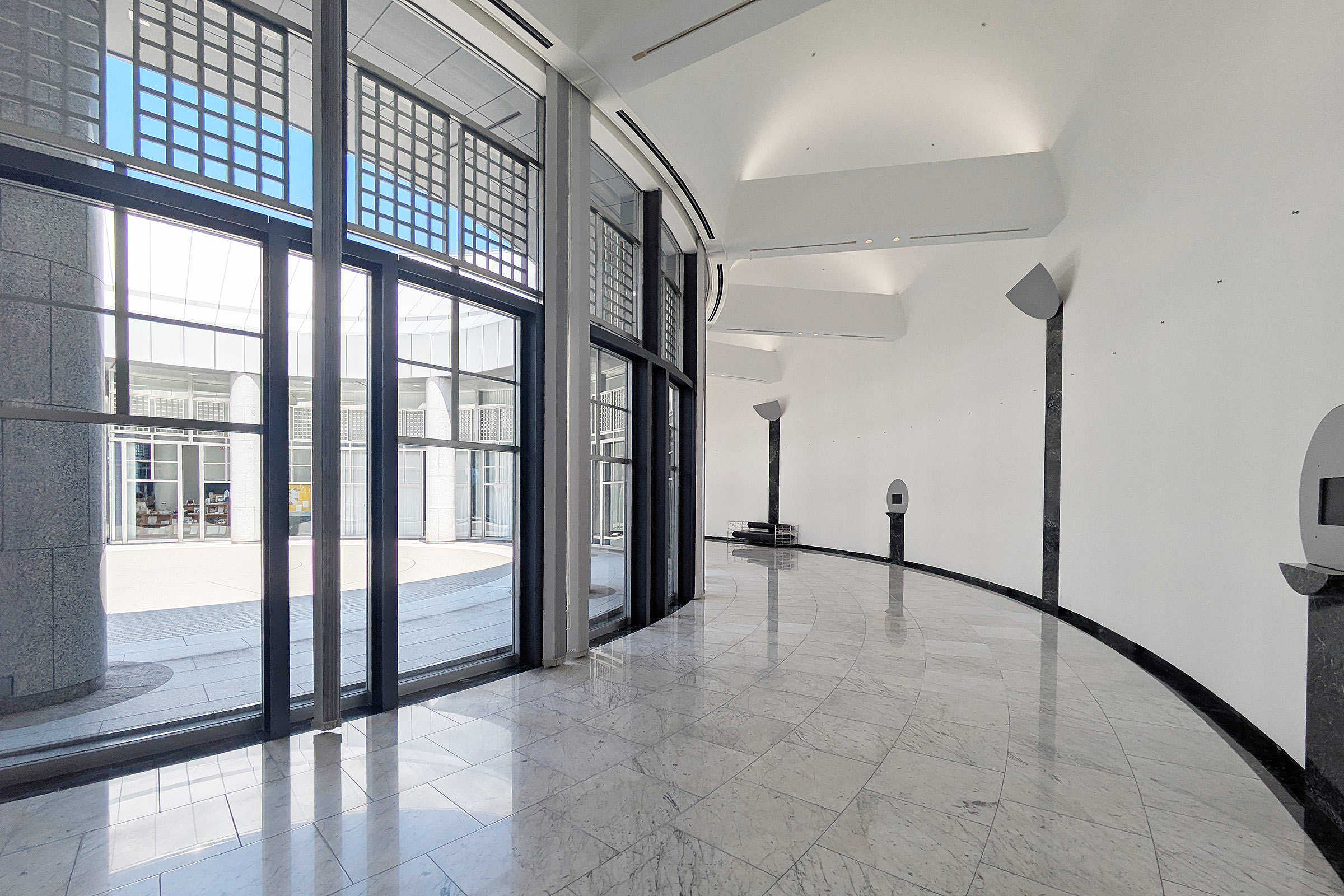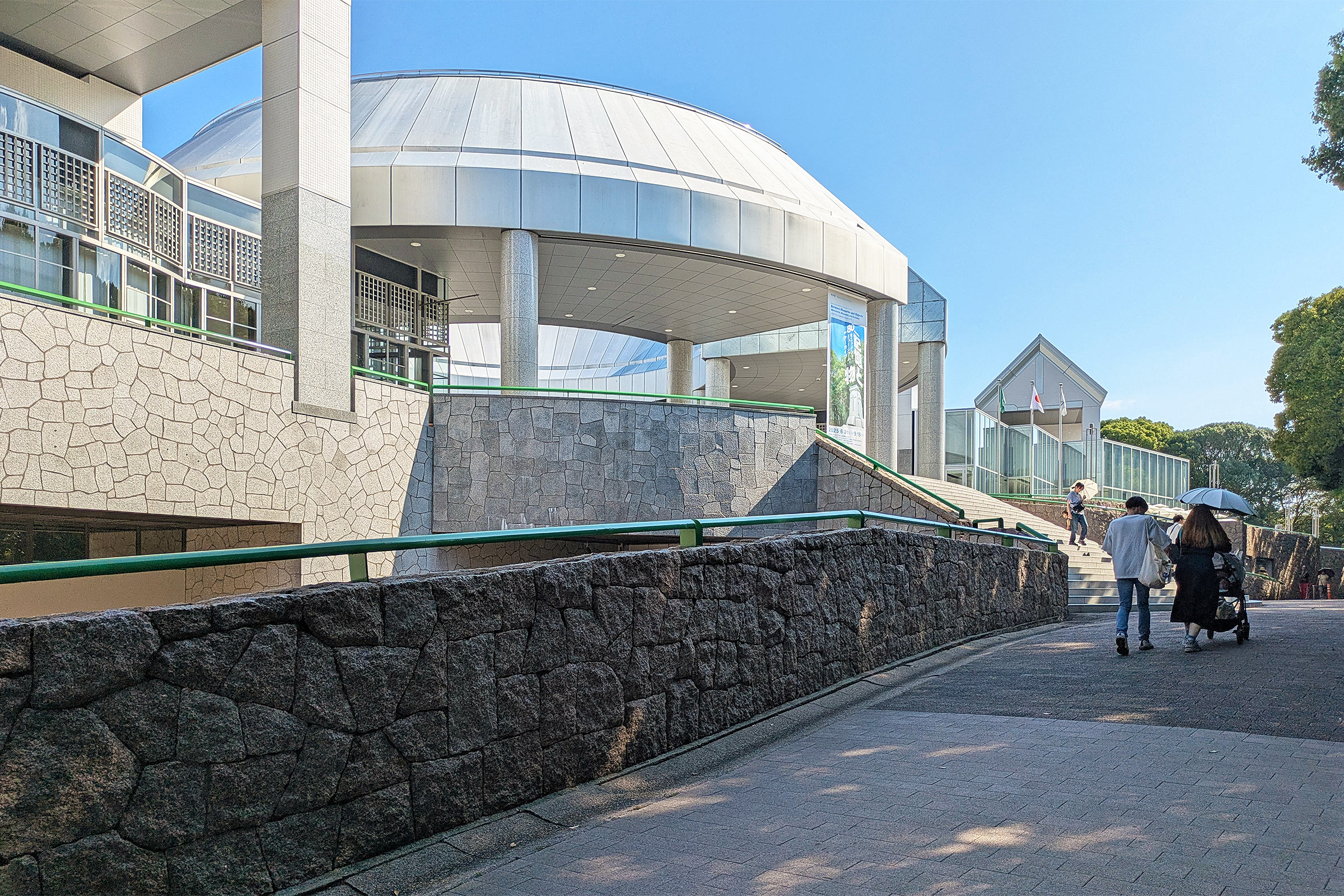 比治山公園に建つ、全国初の公立現代美術館。古代ヨーロッパを思わせる列柱や日本の蔵を思わせる切妻屋根など、ポストモダンの影響が印象的な、建築家 黒川紀章の代表作です。