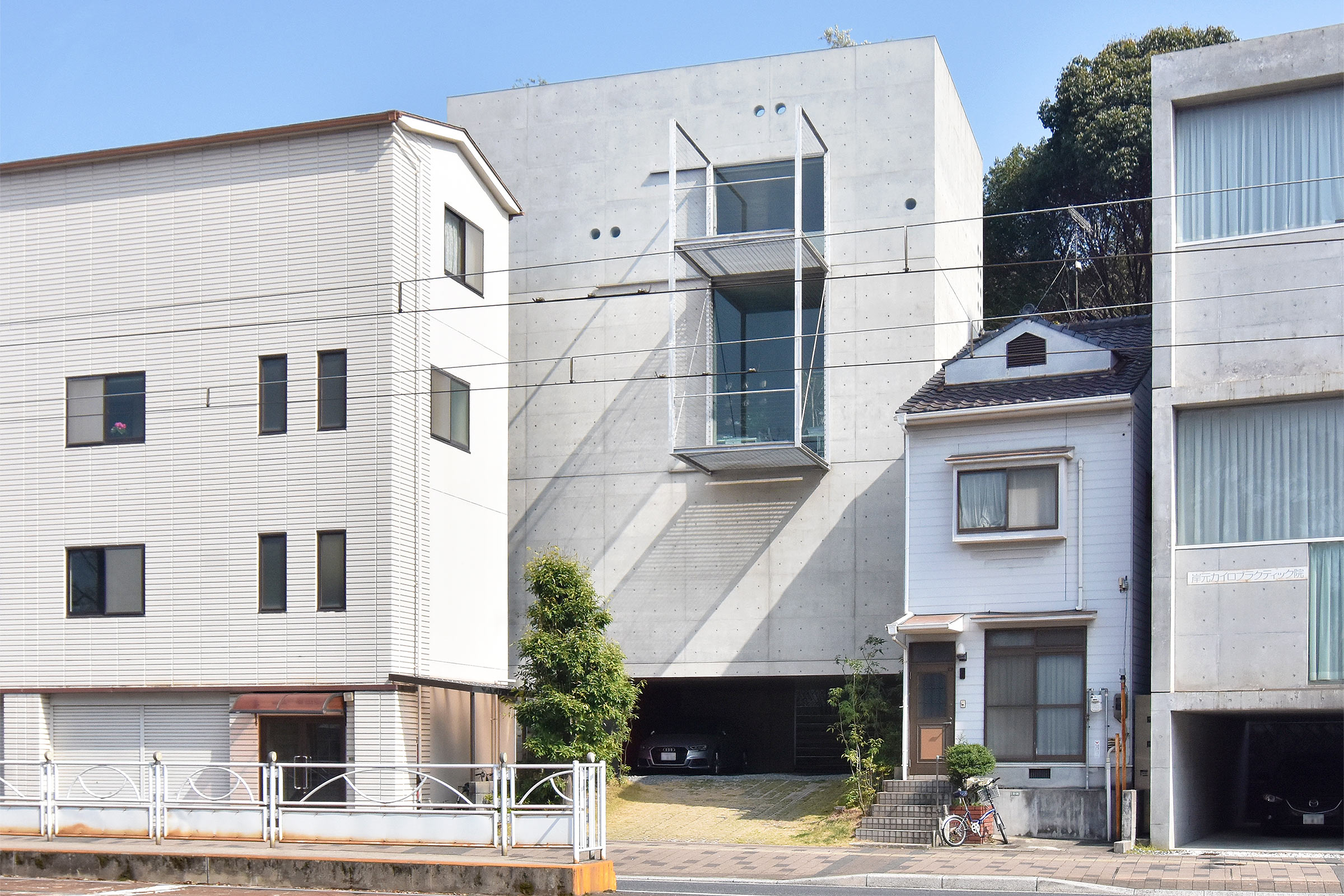 建築家村上徹氏のアトリエ。比治山の麓という立地を生かしつつ、コンクリート打ち放しで極力シンプルなかたちを用いた空間表現が追求されています。スタイリッシュなデザインの階段も見逃せません。ガイドツアーでは解説付きで建物内を見学します。