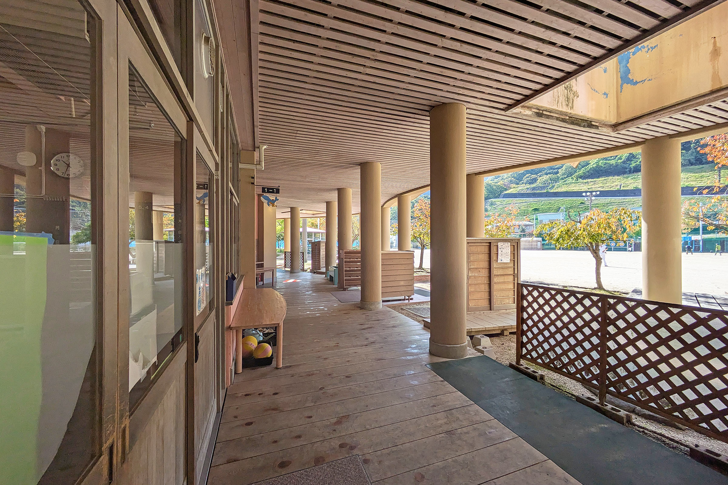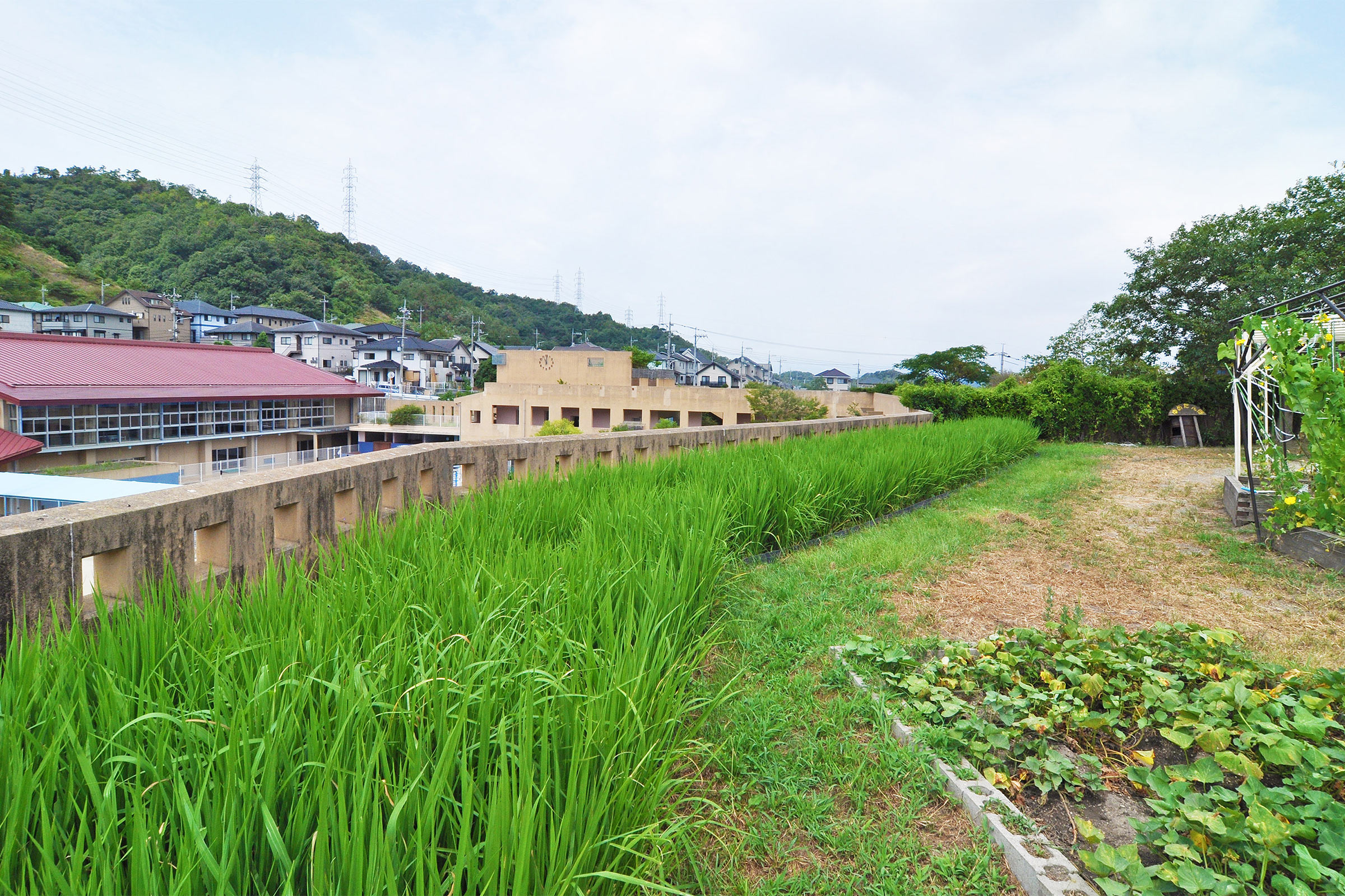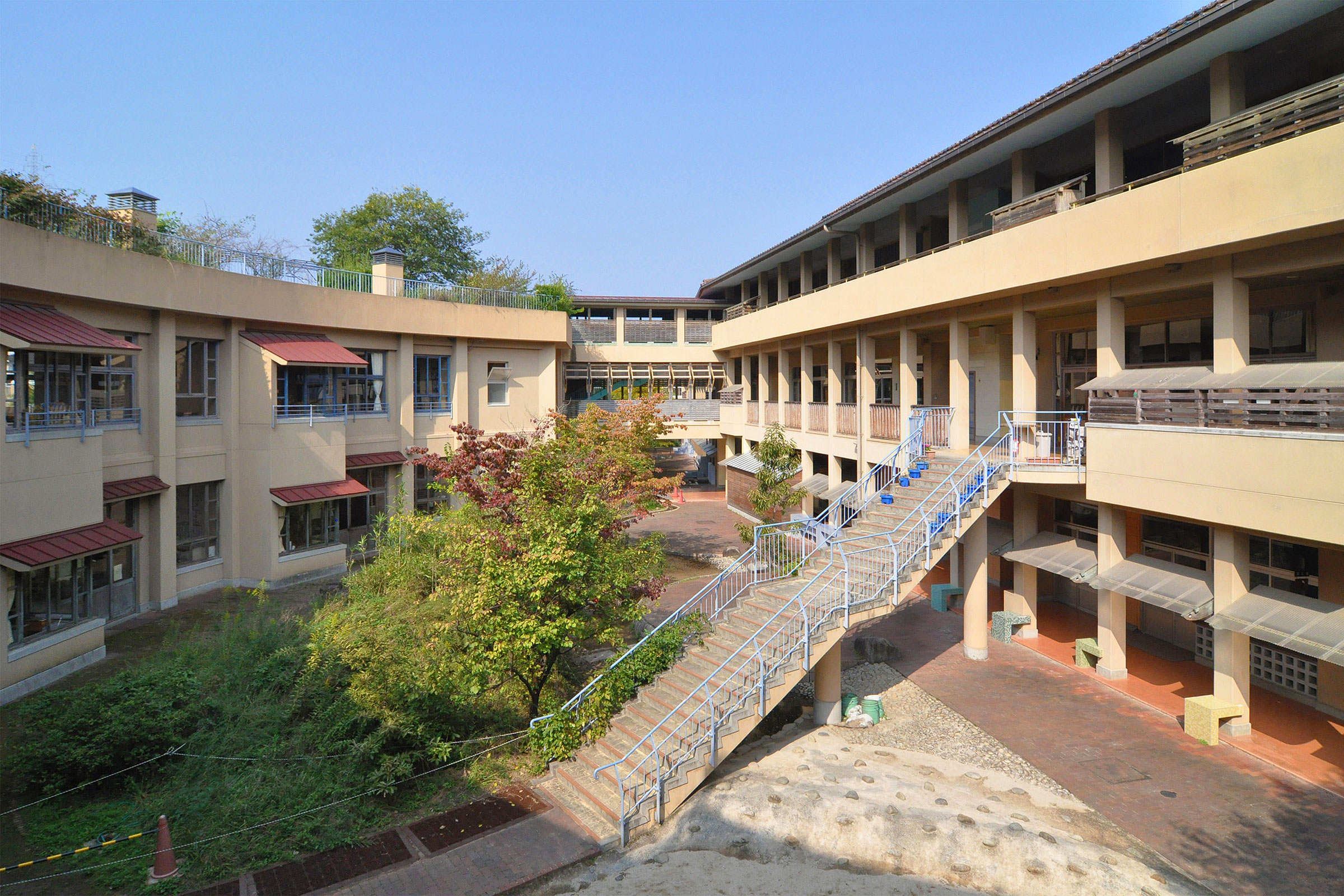 郊外の住宅団地のただなかに建つ小学校。周辺の地形と呼応する棟配置や教室と屋外を近づける平面計画、屋上やテラスの緑化、各所の作りつけ家具など、こどもへの細やかな配慮があふれ見どころいっぱいの建築です。ガイドツアーでじっくりとご見学ください。