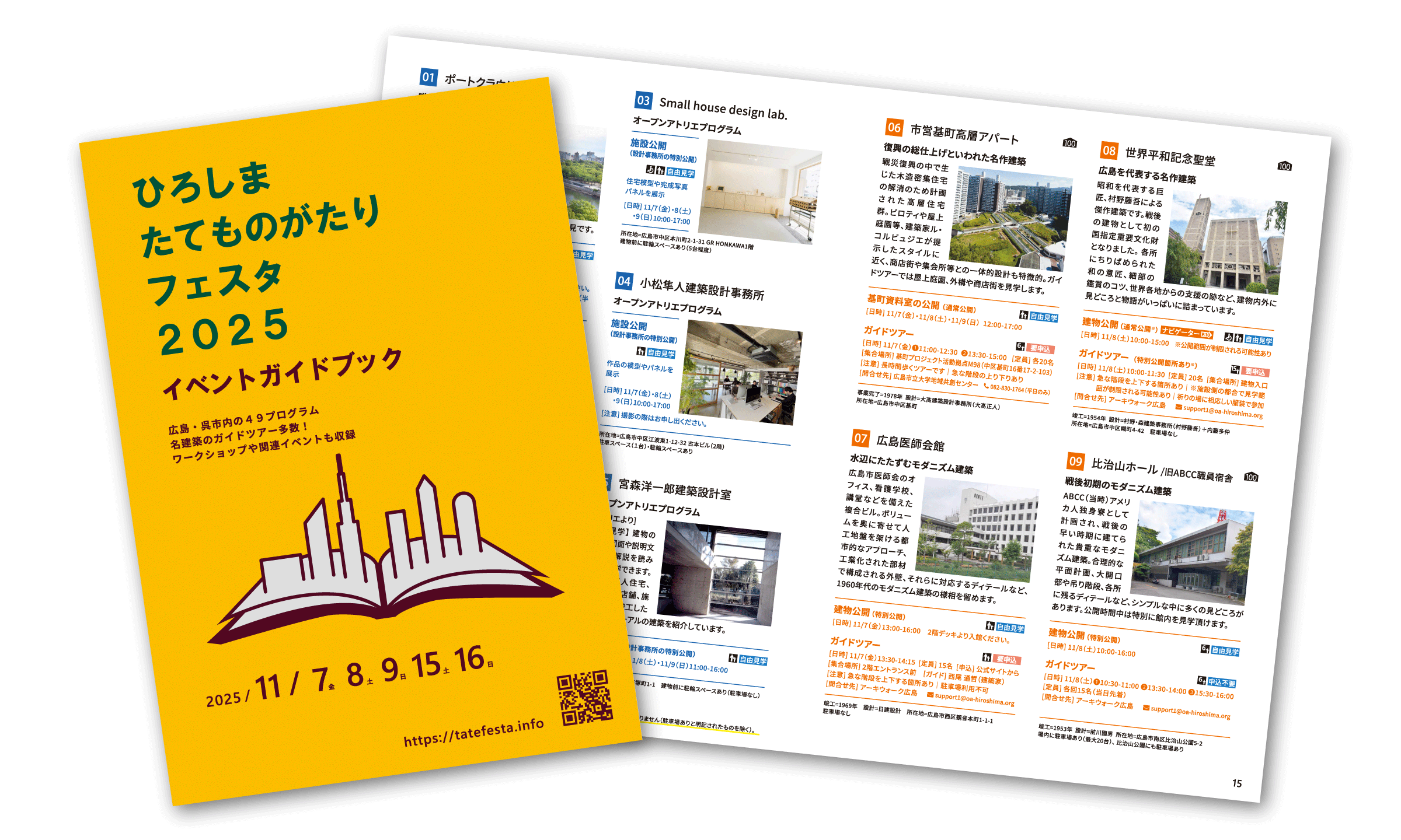 たてフェスの全イベントが網羅されたガイドブック(無料)が配布されています。配布場所での受け取り、郵送での受け取り、データのダウンロード、をお選びいただけます。 たてフェスでの建物めぐりにぜひご活用ください!